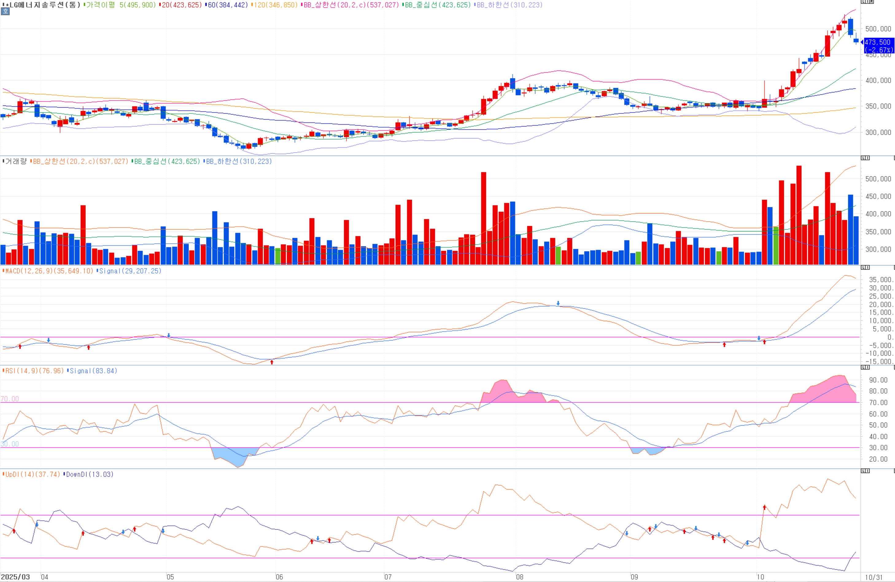 안녕하세요, 주식전문블로거입니다! 요즘 LG에너지솔루션 주가, 정말 뜨겁죠? 9월 말 바닥을 다지는 듯하더니 10월 들어 무섭게 급등하며 우리 주주님들 얼굴에 웃음꽃이 피었을 것 같습니다. 하지만 '이거 너무 오른 거 아냐?', '지금이라도 타야 하나?' 고민이 많으실 텐데요. 마침 최신 증권사 리포트를 보니, 4분기는 '쉬어갈 것'이라는 전망이 나왔습니다. 엇, 그럼 팔아야 할까요? 🤯 그래서 오늘은 **LG에너지솔루션(373220)**에 대해 속 시원하게 파헤쳐 보는 시간을 갖겠습니다. 단기 실적 전망은 왜 어두운지, 그런데도 왜 목표주가는 올렸는지, 펀더멘탈과 차트가 말해주는 힌트를 함께 살펴보시죠! 😊