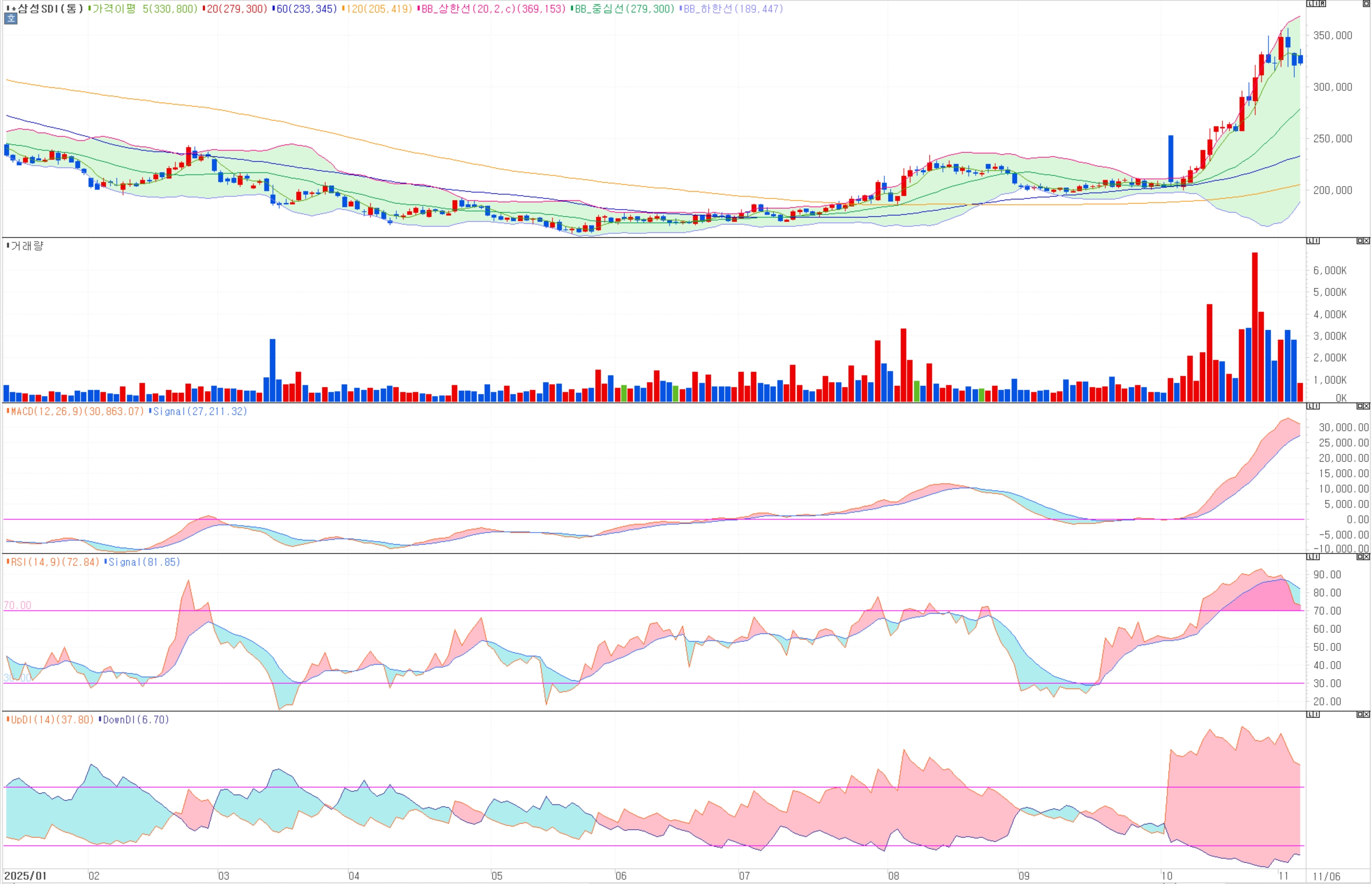 삼성SDI 주요 기술적 지표 (2025.11.06 기준)